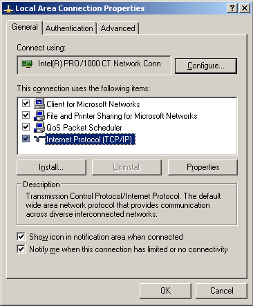 После этого должно открыться диалоговое окно Local Area Connection Properties (Свойства сетевого соединения), позволяющее настраивать сетевой адаптер (рис. 1).