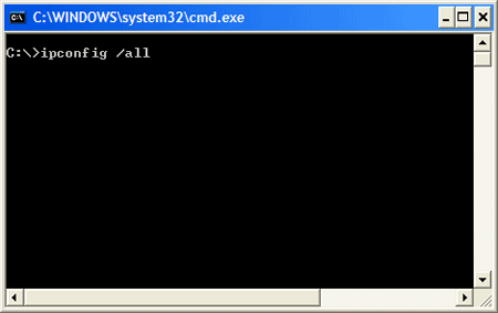 Запуск окна командной строки В командной строке наберите команду 'ipconfig/all' (рис. 10).