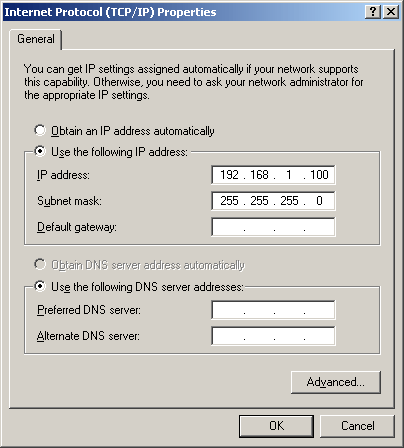 Если IP-адрес точки доступа по умолчанию отличается от указанного, то его следует сначала поменять. После того как компьютеру будет присвоен статический IP-адрес, щелкните на значке My Network Places (Сетевое окружение) правой кнопкой мыши и в открывшемся списке выберите пункт Properties (Свойства). В открывшемся окне Network Connection (Сетевые соединения) выберите значок с названием соединения с Интернетом (название этого соединения задаётся произвольно при настройке соединения с Интернетом). Щёлкнув на нём правой кнопкой мыши, перейдите к пункту Properties и в открывшемся диалоговом окне Internet Properties (Свойства соединения с Интернетом) перейдите к вкладке Advanced. В группе Internet Connection Sharing (Разделяемый доступ в Интернет) отметьте пункт Allow other network users to connect through this computer's Internet connection (Разрешить пользователям локальной сети пользоваться соединением с Интернетом через данный компьютер).