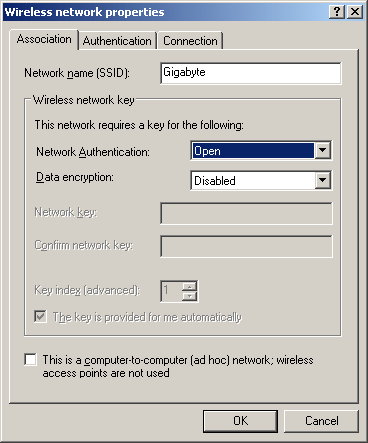 Кроме изменения IP-адреса точки доступа, используя диалоговое окно настроек точки доступа, для настройки беспроводной сети требуется задать следующие параметры: Тип беспроводной сети. Если точка доступа поддерживает несколько беспроводных стандартов, необходимо в явном виде указать стандарт беспроводной сети (например, 802.11g+). Однако следует учесть, что жёсткое задание стандарта отсекает клиентов, не поддерживающих данный стандарт. Поэтому в некоторых случаях целесообразно указывать смешанный тип протоколов, например, 802.11b/g. Номер канала. Для беспроводного соединения точки доступа с клиентами сети могут использоваться различные частотные каналы. К примеру, в случае протокола 802.11g можно использовать каналы с первого по тринадцатый. Можно в явном виде указать, какой именно канал будет использоваться для установления соединения, а можно задать автоматический выбор канала (Enable auto channel select), причём автоматический выбор каналов предпочтительнее. SSID.